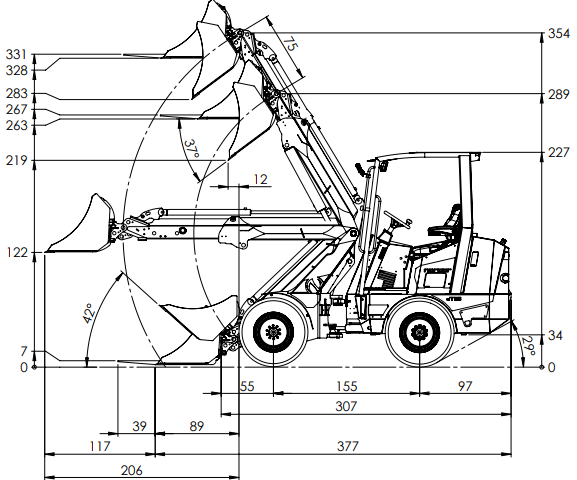 | Tipping load | +extra weight 364kg | |||